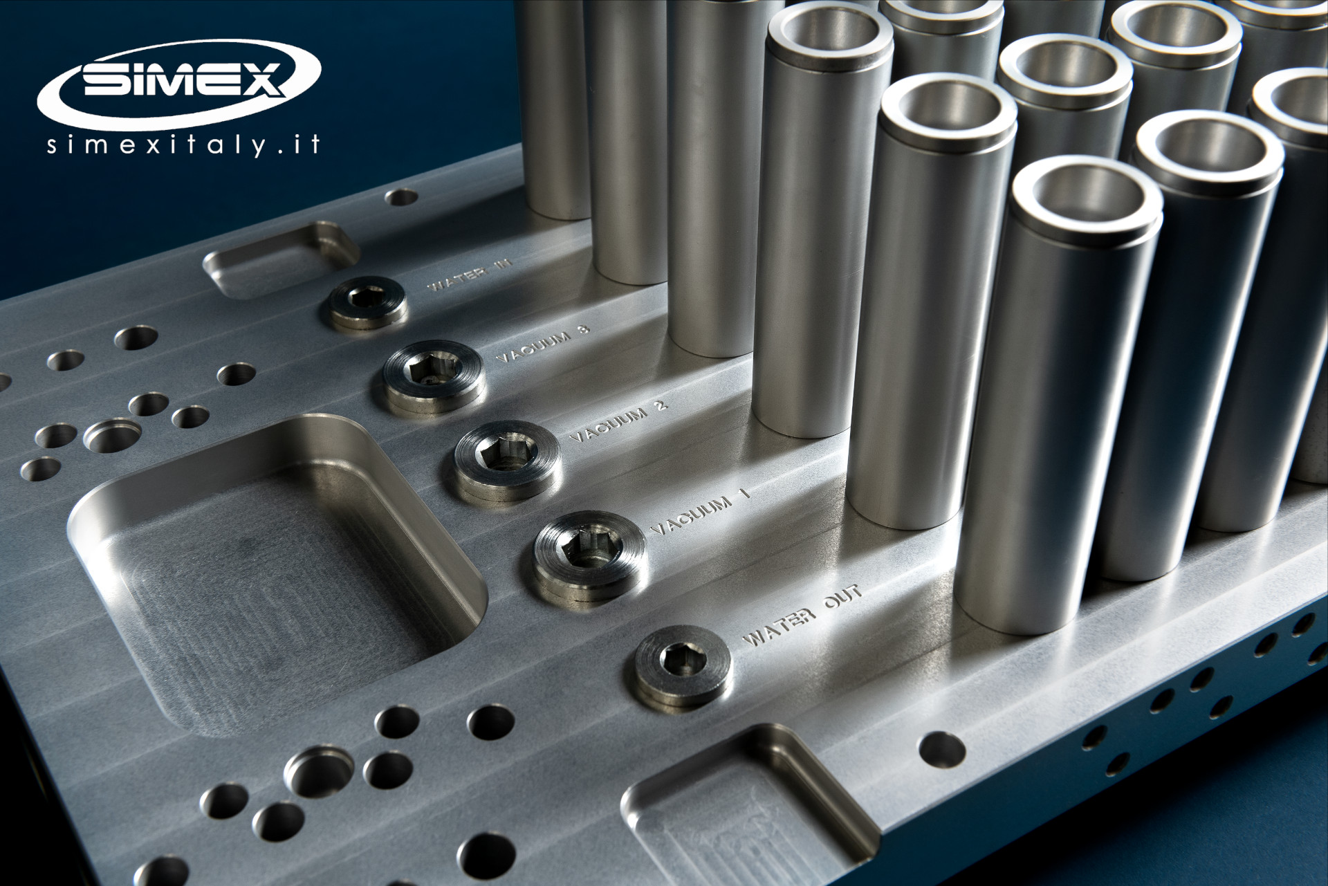 Moules d’injection multi-cavités pour préformes PET, fabriqués dans les ateliers de production SIMEX en utilisant des aciers spécifiques certifiés pour ces applications, avec construction de...